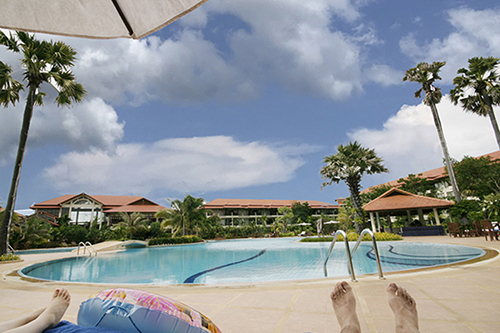 アンコール地区にあるデラックスホテル。なぜか宿泊客が殆んどいなく貸切状態!のんびりプールサイドで過ごしました。アンコール・ワットを訪れる際は, カンボジアの物価が日本の1/5と非常に安く, 超格安で宿泊出来るのでアンコール地区に数か所ある超デラックスホテルに宿泊するのをお勧めします。 ホテル内の部屋の写真を撮り忘れましたが, 豪華な部屋でも一部屋10,000円程度であり, 東京なら50,000円位するのではと思いました。
