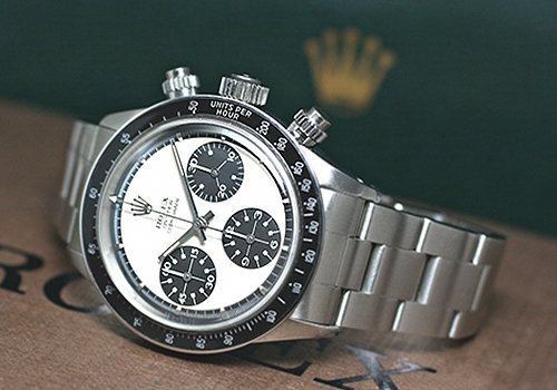 これが、実際にポール・ニューマンが着用していた Ref.6239 の赤巻き白ポールである。クレージーな話だが, 2017年10月 ニューヨークの PHILLIPS オークションで, な・なんと !! 1,770万ドルの約20億円で落札された。